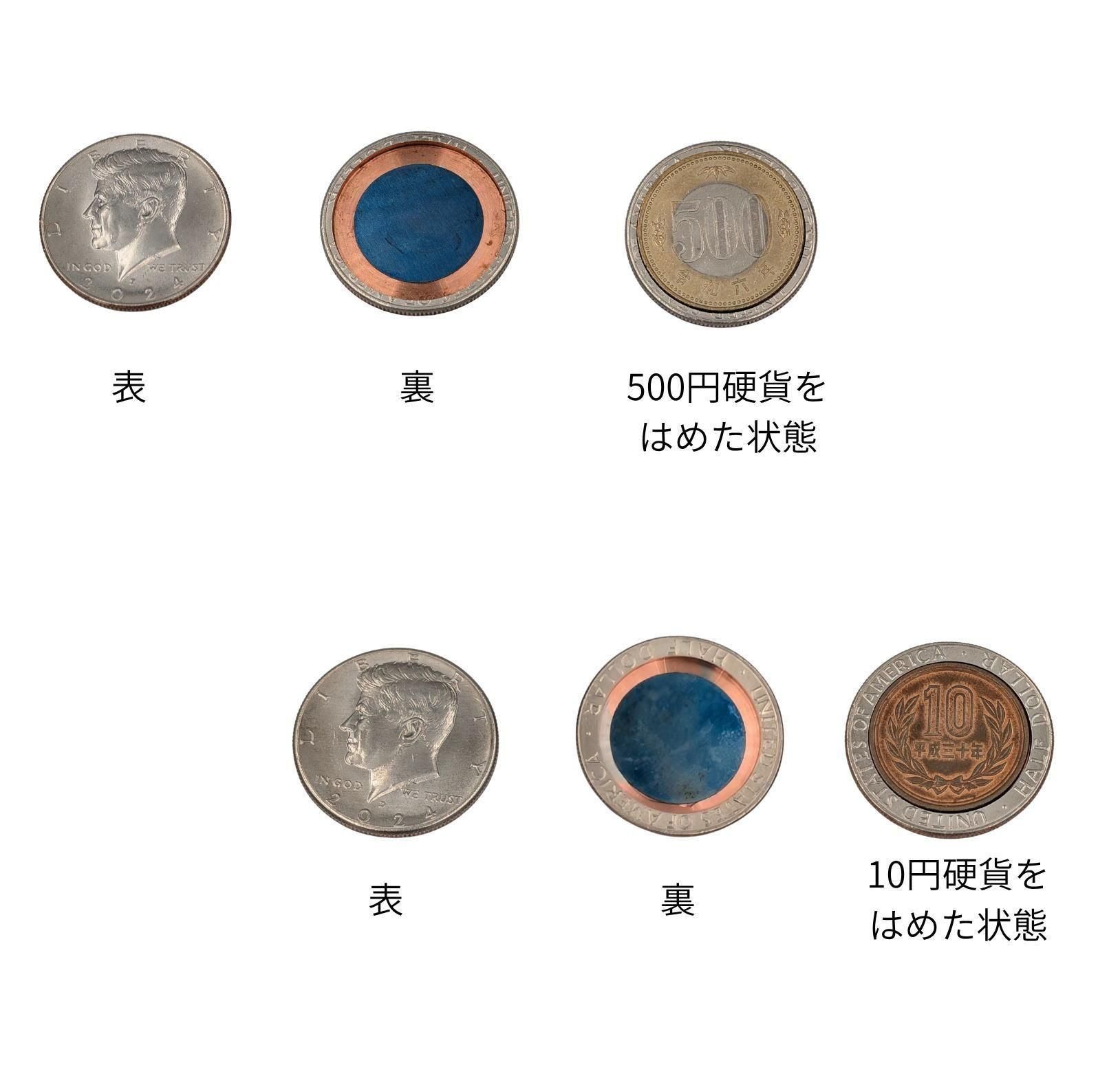 ¥Ï¡¼¥Õ¥À¥é¡¼¡¦¥³¥¤¥ó¤Î¥·¥§¥ë¤Ç¤¹¡££±Ëç¤Î²Á³Ê¤Ç¤¹¡£ ¥·¥à¡ÊÇö¤¤Å´ÈÄ¡ËÉÕ¤¤Ç¤¹¤Î¤Ç¡¢¥Þ¥°¥Í¥Ã¥È¤Ç½èÍý¤Ç¤¤Þ¤¹¡£ ¤½¤ì¤¾¤ìÆüËܹŲߤÎ500±ß¡¢10±ß¤Ë¥Ô¥Ã¥¿¥êÈï¤ë¤è¤¦¤Ë¤Ç¤¤Æ¤¤¤Þ¤¹¡£ ¥Ï¡¼¥Õ¥À¥é¡¼¤Î¥®¥ß¥Ã¥¯¤ò»È¤Ã¤¿¥Þ¥¸¥Ã¥¯¤Î¸å¤Ç¡¢ ÆüËܤΥ³¥¤¥ó¡§10±ß¡¢500±ß¤ËÊѤ¨¤Æ½ª¤ï¤Ã¤Æ¤âÌÌÇò¤¤¼ê½ç¤Ç¤¹¡£ ¤½¤ì¤¾¤ì10±ß¡¢500±ß¤ËÈ碌¤¿»þ¤Ë¡¢¥Ô¥Ã¥¿¥ê¥µ¥¤¥º¤Î¥·¥§¥ë¤Ç¤¹¤Î¤Ç¡¢²»¤â¤·¤Þ¤»¤ó¤·¡¢¿¿²£¤«¤é¸«¤Æ¤â¸ü¤ß¤¬¤Û¤Ü°ì½ï¤Ç¤¹¤Î¤ÇÁ´¤¯µ¤¤Ë¤Ê¤ê¤Þ¤»¤ó¡£ Â礤¤¥Ï¡¼¥Õ¥À¥é¡¼¶ä²ß¤¬ÆüËܤµ¤¤10±ßƼ²ß¤ËÊѤï¤Ã¤¿¤Û¤¦¤¬¡¢¸½¾Ý¤¬¥Ï¥Ã¥¥ê¤È¤·¤Æ¤¤¤Æ¡Ê¥µ¥¤¥º¤ÎÊѲ½¤È¿§¤ÎÊѲ½¡Ë¸ú²ÌŪ¤«¤âÃΤì¤Þ¤»¤ó¡£ PK¥ê¥ó¥°¤Ç¡¢¤â¤·¤¯¤Ï¡¢ÊÌÅÓ¥Þ¥°¥Í¥Ã¥È¤òÏÓ»þ·×¤äµ¤ËÉÕ¤±¤Æ¤ª¤¤¤Æ¡¢½Ö´ÖÊѲ½¤ò±é¤¸¤Æ¤ß¤Æ¤¯¤À¤µ¤¤¡£ ¡Ê³Æ¼ï¥Û¡¼¥ë¥É¥¢¥¦¥È¡§°ú¤¥Í¥¿¤Ç¤â²Ä¡Ë ÆüËܹŲߤΥ®¥ß¥Ã¥¯¥³¥¤¥ó¤¬»È¤¨¤Þ¤»¤ó¤Î¤Ç¡¢¥³¥¤¥ó¥Þ¥¸¥Ã¥¯¤Ë¤Ï¡¢¤³¤Î¤è¤¦¤Ê³¤³°¥³¥¤¥ó¤ò»È¤Ã¤Æ¡¢É¬ÍפǤ¢¤ì¤Ð¡¢ºÇ¸å¤ËÆüËܤΥ³¥¤¥ó¤ËÊѤ¨¤Æ¼êÅϤ·¸¡¤á¤È¸À¤¦¤Î¤¬¥Ù¥¹¥È¤Ç¤Ï¤È»×¤¤¤Þ¤¹¡£ ¢¨¤´Ãíʸ»þ¤Ë¡ã500±ßÍÑ¥·¥§¥ë¡ä¤«¡ã10±ßÍÑ¥·¥§¥ë¡ä¤«¤òÁªÂò´ê¤¤¤Þ¤¹¡£¤É¤Á¤é¤â²Á³Ê¤Ï°ì½ï¤Ç¤¹¡£ ¢¨ÆÃ¤Ë²òÀâ¤Ï¤¢¤ê¤Þ¤»¤ó¡£